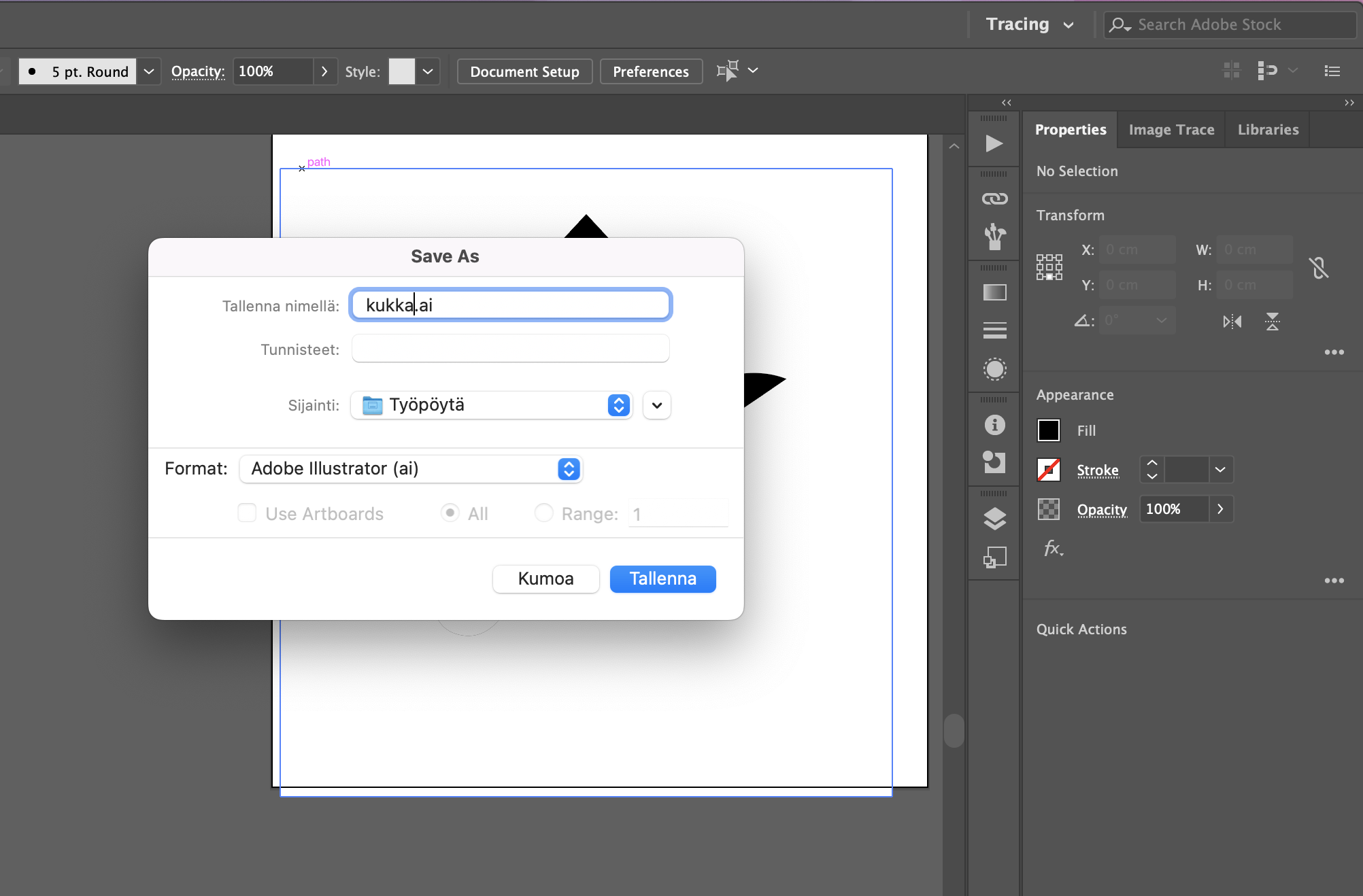 - Tallenna työ .ai- ja .png-muodoissa.