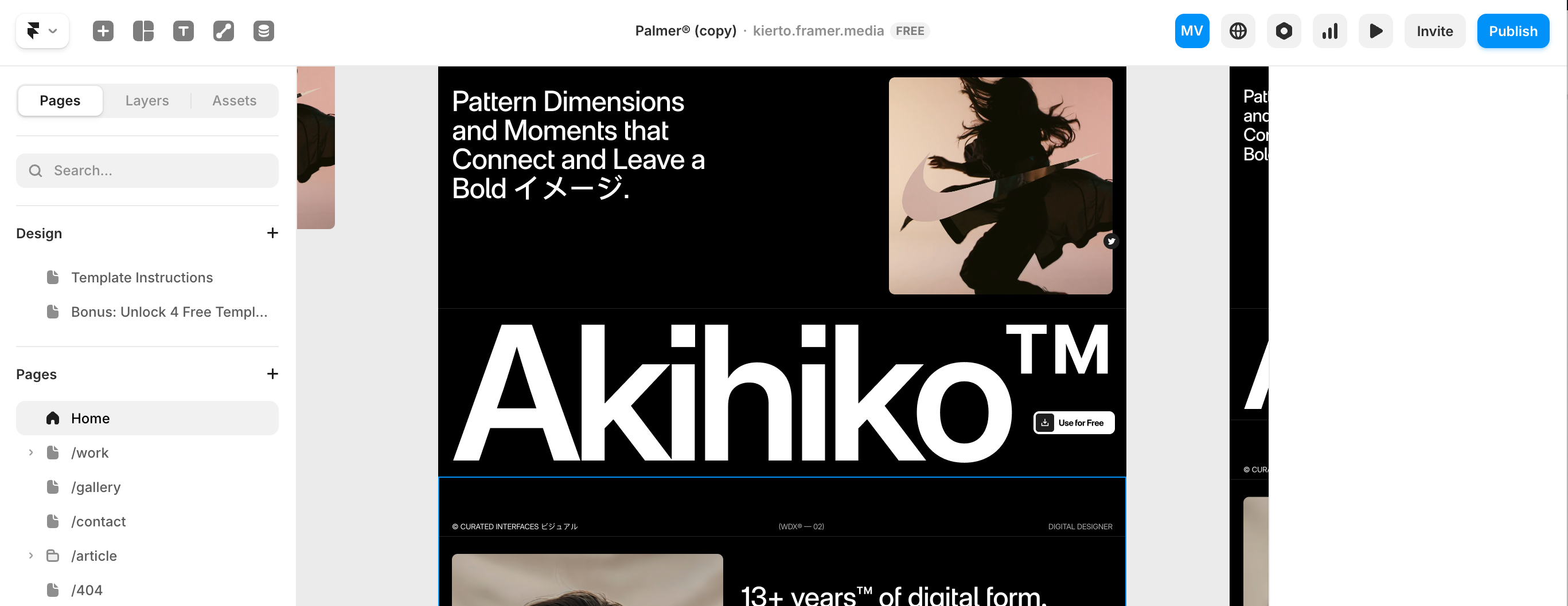 - ilmainen URL tyyliin: omanimi.framer.media