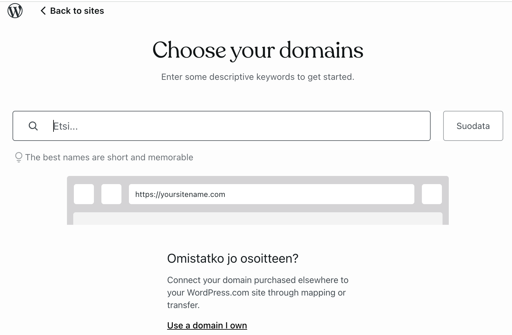 - Sivuston nimi (Give your site a name)