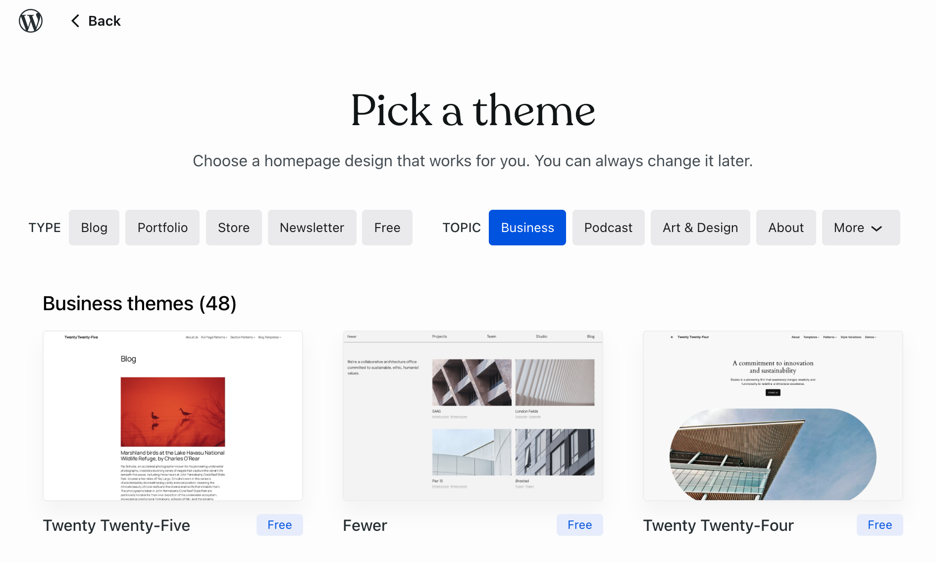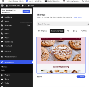 Sivustot kannattaa ensin luona näillä kolmella toimivalla teemalla (appearance -> themes) ja vaihtaa myöhemmin.