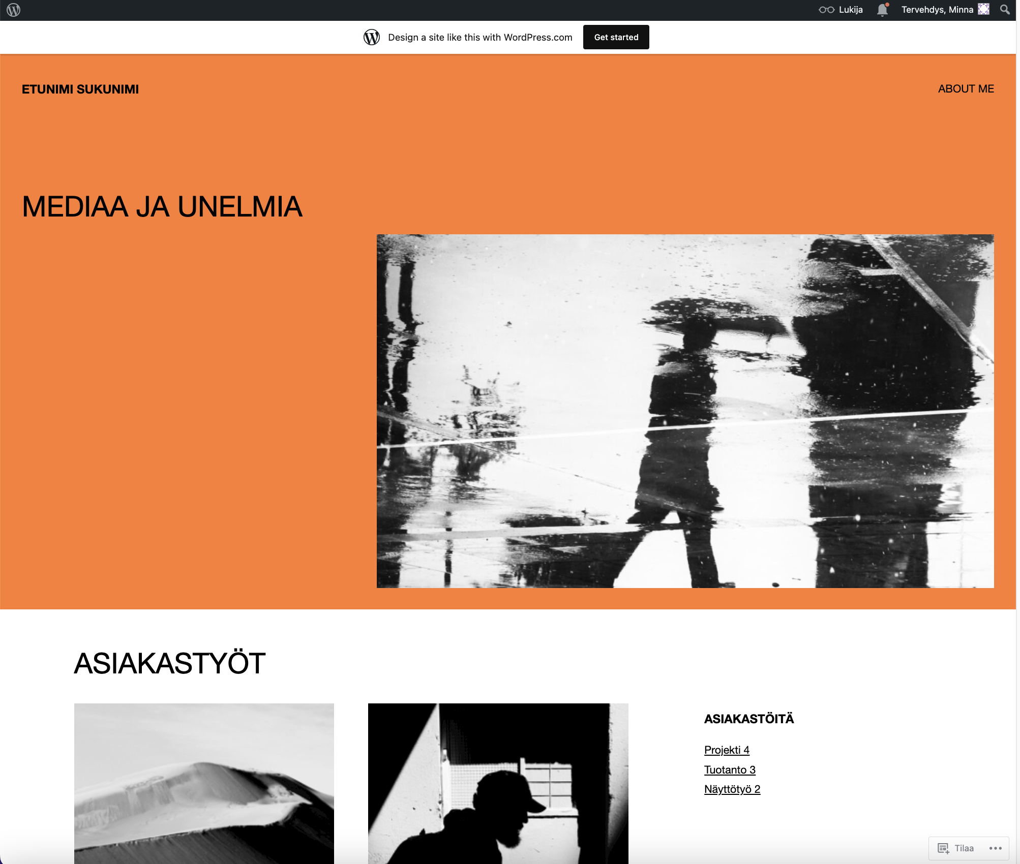 1. Portfolio (etunimisukunimi.wordpress.com), teema Rainfall. Katso malliportfolio