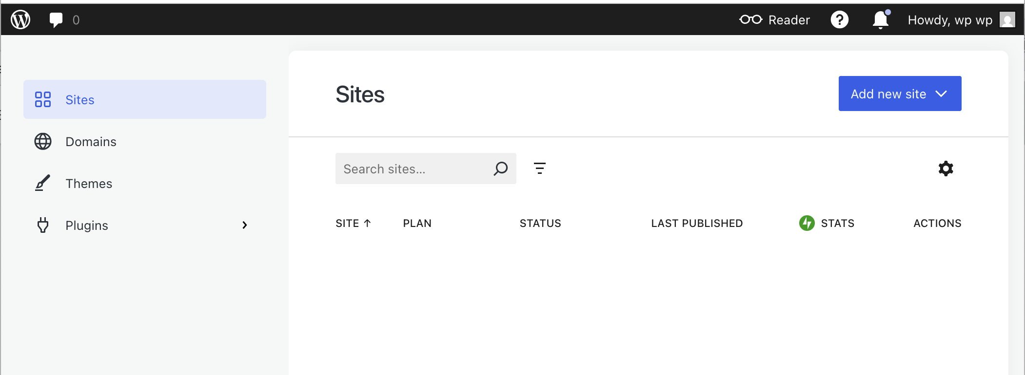 - Pääset takaisin domaineihin vasemmalta ylävalikosta W-ikonin alta (pudotusvalikko Sites)