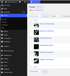 - Valitse vasemmalta mustasta työkaluvalikosta Posts ja julkaisut tulevat näkyviin muokattaviksi